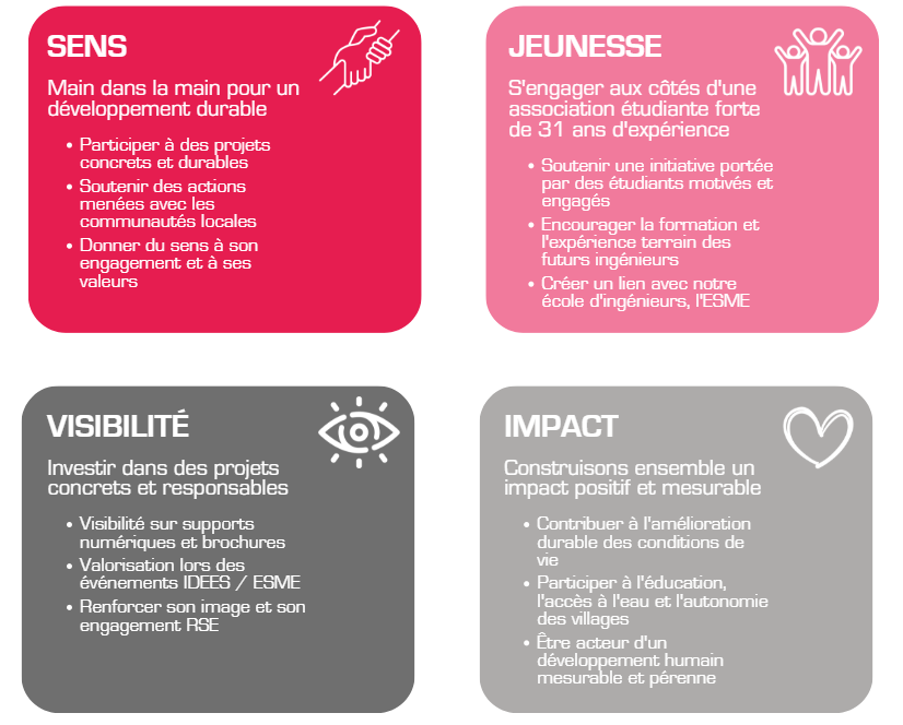 Nous avons la chance de compter sur le soutien de nombreuses entreprises et institutions qui partagent nos valeurs et notre vision. Leur engagement nous permet de concrétiser nos actions et de maximiser notre impact sur le terrain.